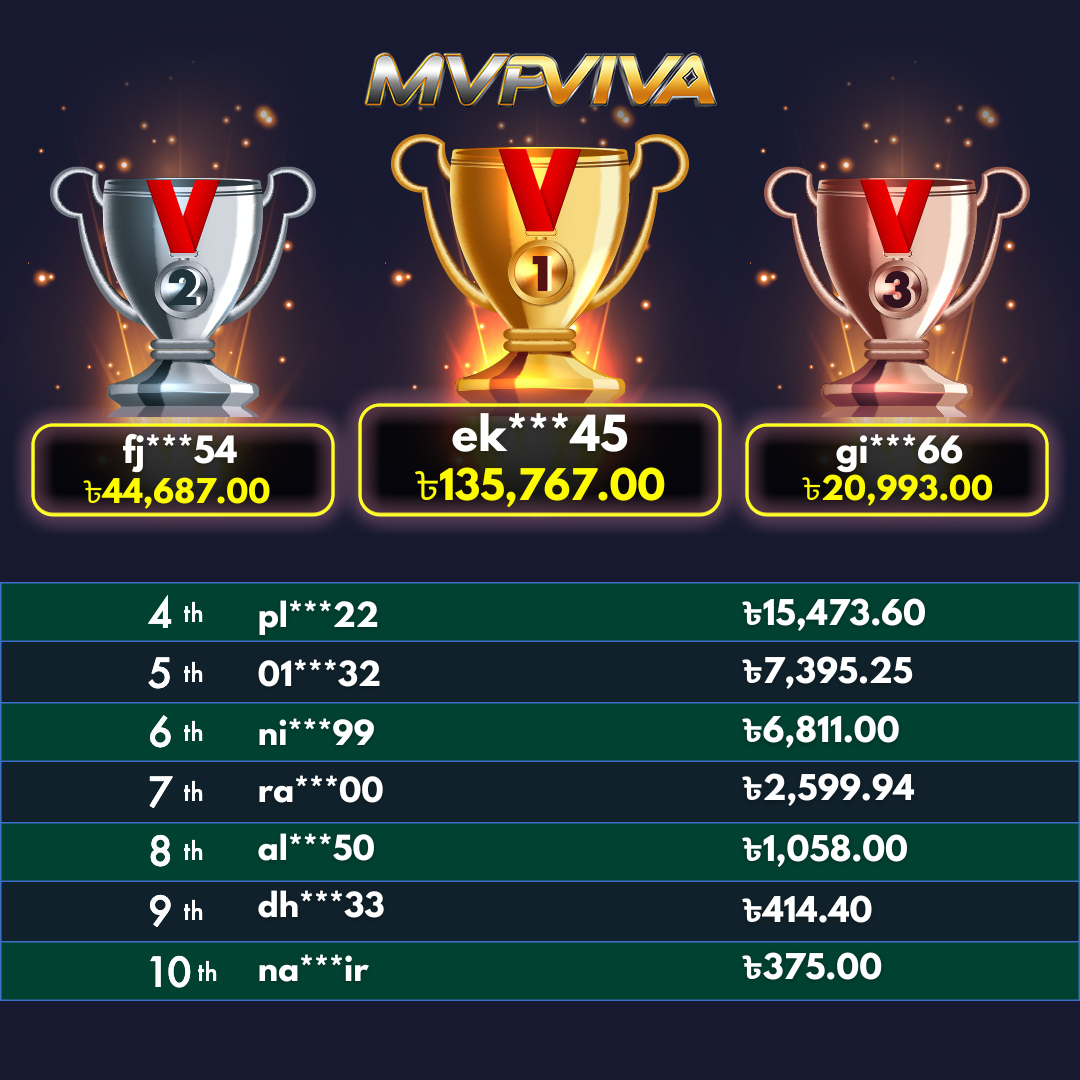 - কজন খেলোয়াড়ের MVP VIVA-তে শুধুমাত্র একটি নিবন্ধিত অ্যাকাউন্ট থাকার অনুমতি রয়েছে। যদি আমরা দেখতে পাই যে খেলোয়াড় বারবার একটি নতুন অ্যাকাউন্ট তৈরি করছে, তাহলে MVP VIVA অ্যাকাউন্টটি বন্ধ করার অধিকার রাখে এবং MVP VIVA তহবিল স্থায়ীভাবে জব্দ করবে।