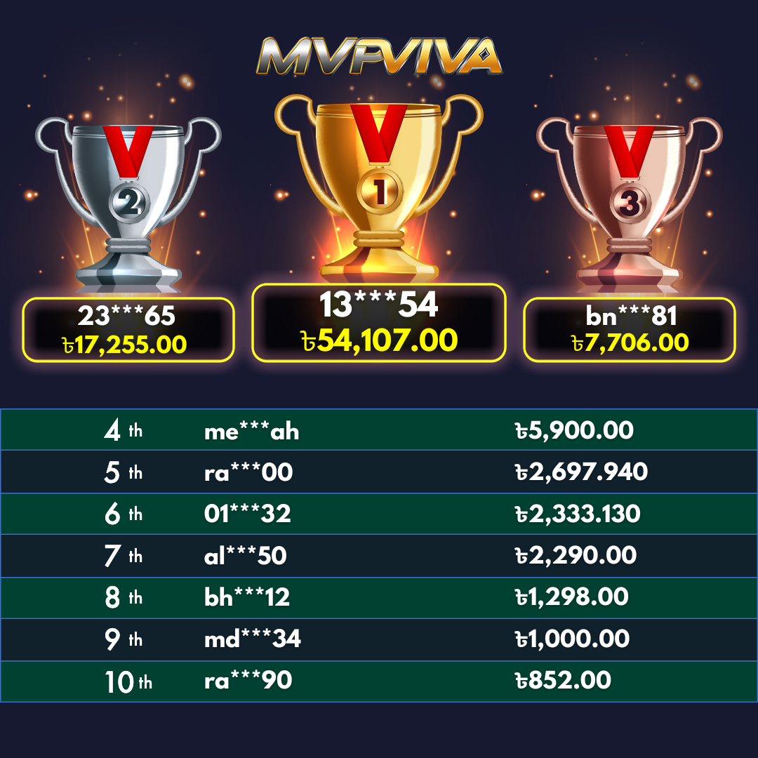 - দৈনিক শীর্ষ ১০ জন বিজয়ীর বোনাস দিনের ১২:০০ টার আগে জারি করা হবে।